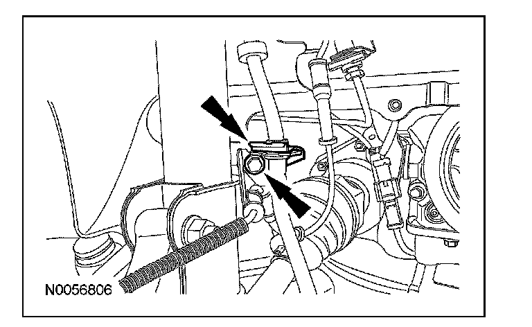 37. Install the RH brake hose retainer and the ABS sensor bolt.