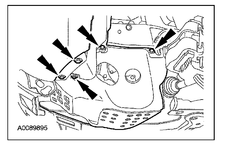 40. Install the LH splash shield, the retainer and the 5 bolts.