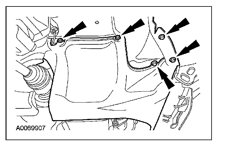 41. Install the RH splash shield, the retainer and the 5 bolts.