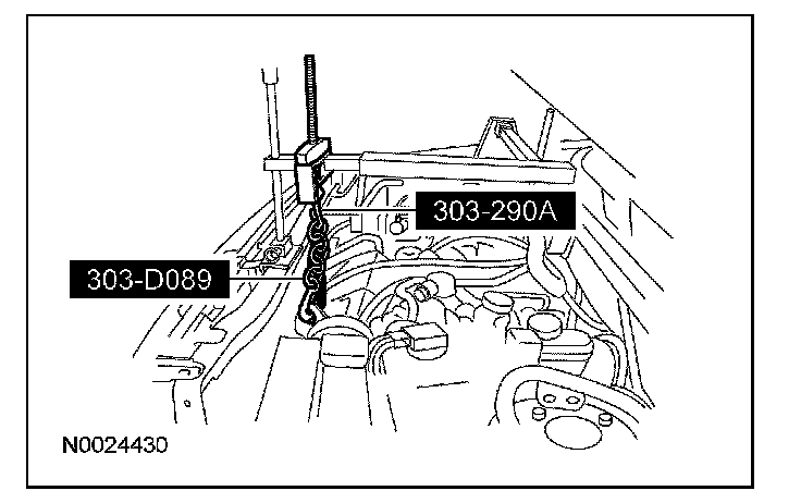 43. Using the special tools, lower the engine onto the RH engine mount.