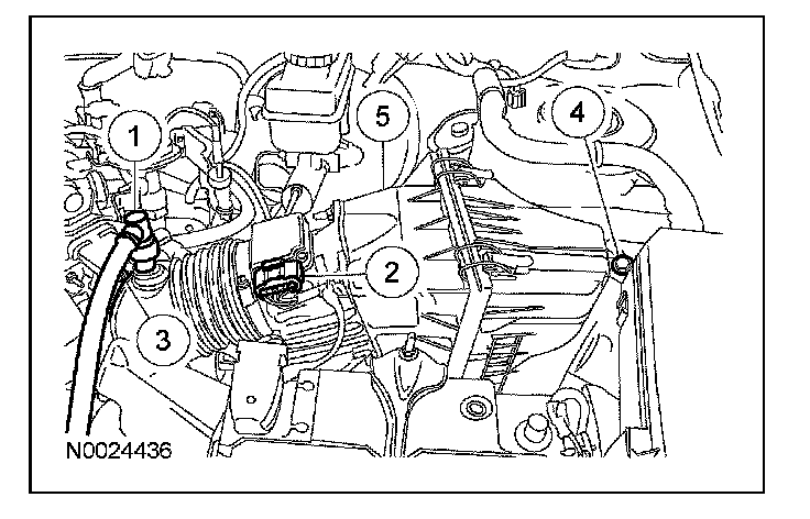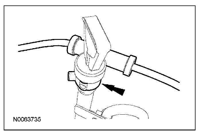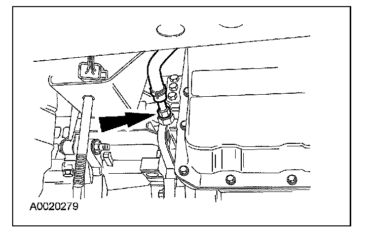 7. Disconnect the power transfer unit (PTU) vent hose from the transmission fluid filler tube.