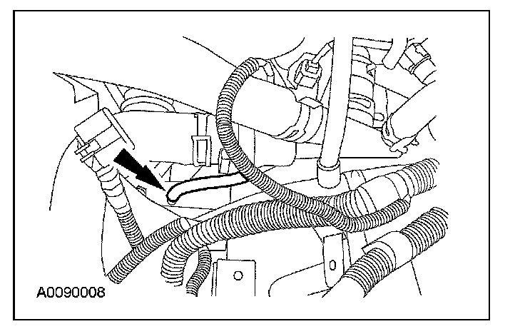 8. Disconnect the wire harness from the battery tray hold-down bracket.