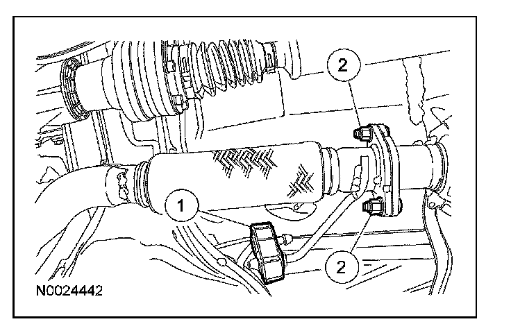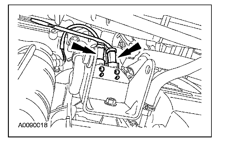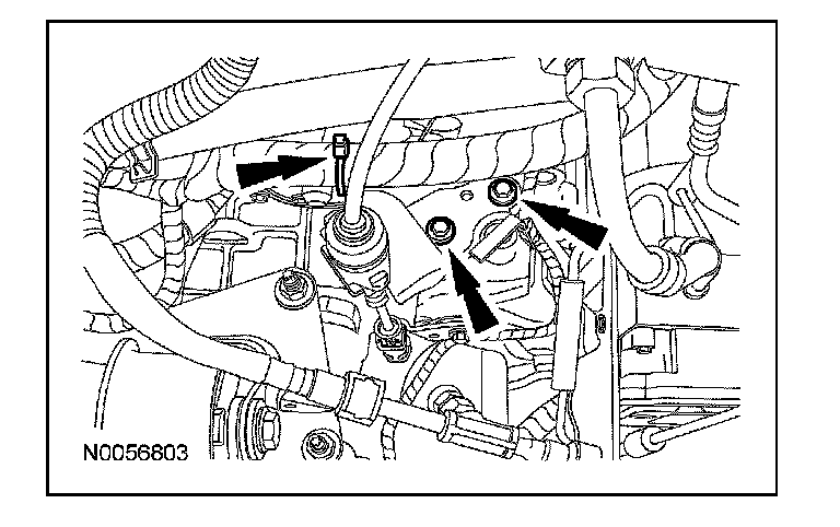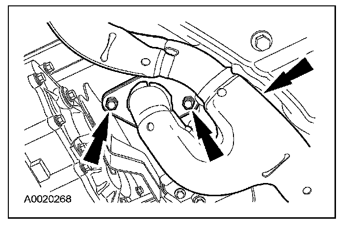 44. Remove the RH catalytic converter to gain access to the PTU bracket. For additional information, refer to Catalytic Converter.