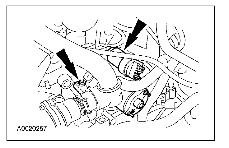 14. Remove the 2 starter bolts and remove the starter motor.