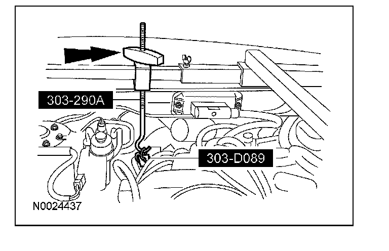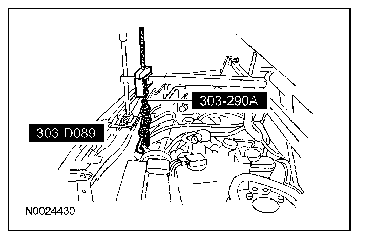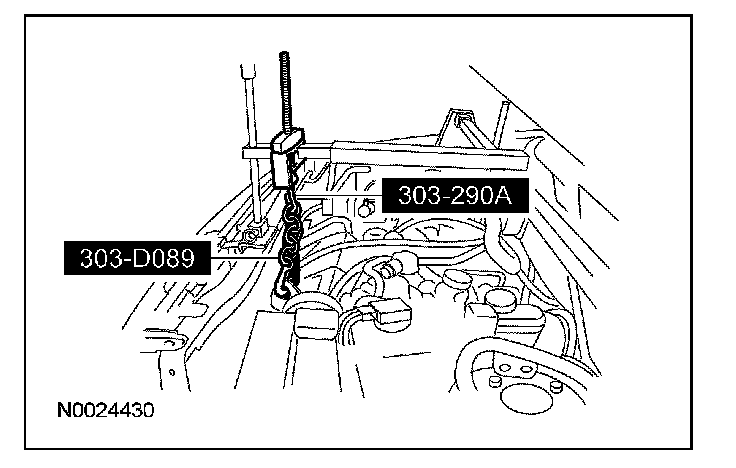 Using the special tool, raise the front of the engine.