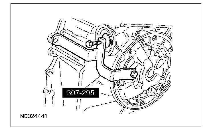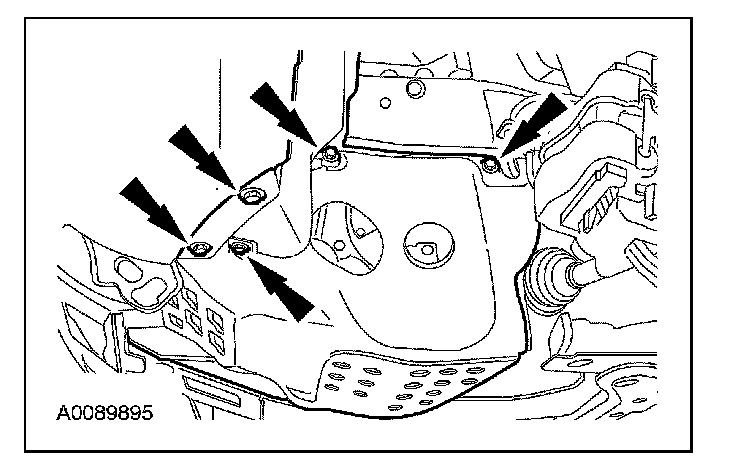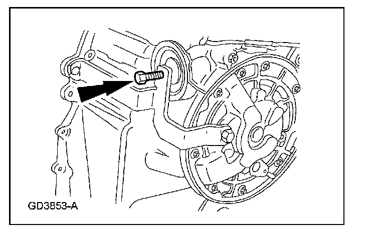 3. Remove the transmission fluid cooler tube bracket and bolt and position it aside.