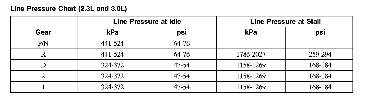 3. Start engine and check line pressures. Refer to following the Line Pressure Chart to determine if line pressure is within specifications.