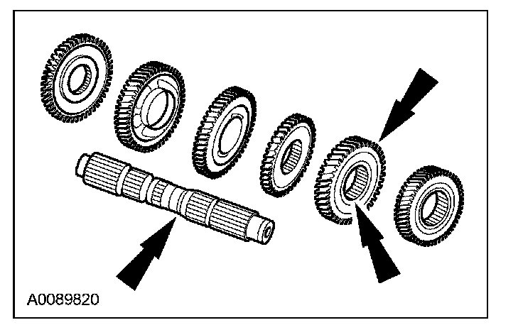 11. Inspect all mainshaft parts for damage, peeling, dents, uneven wear or bending. Install new parts as necessary.