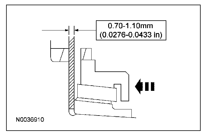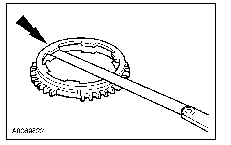 Measure the clearance between the outer synchronizer ring and the synchronizer cone at 2 or more points diagonally opposite and calculate the mean value. Install new parts if not within specification.
