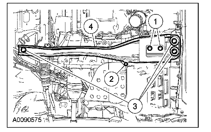 3 Remove the 2 front-to-aft crossmember bolts and the nut.