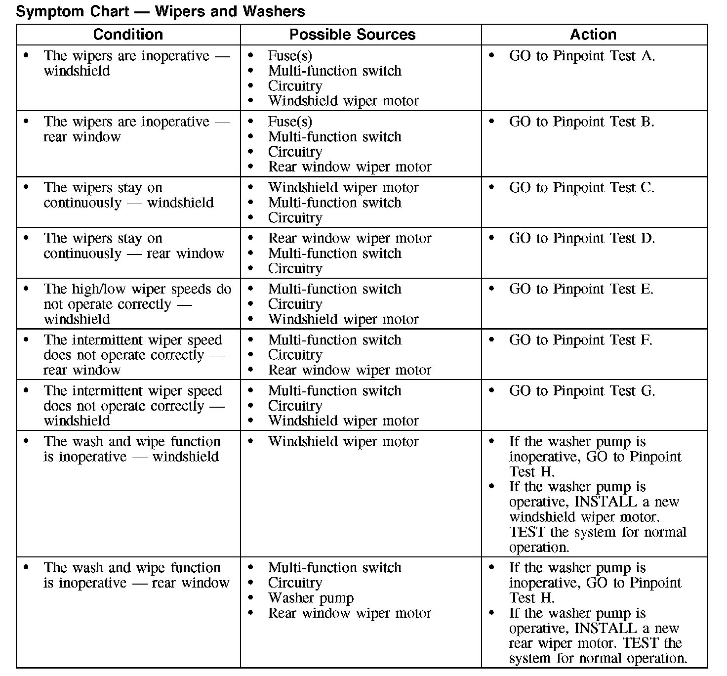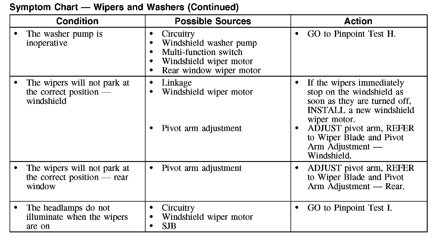 Symptom Chart - Wipers And Washers (Part 2):