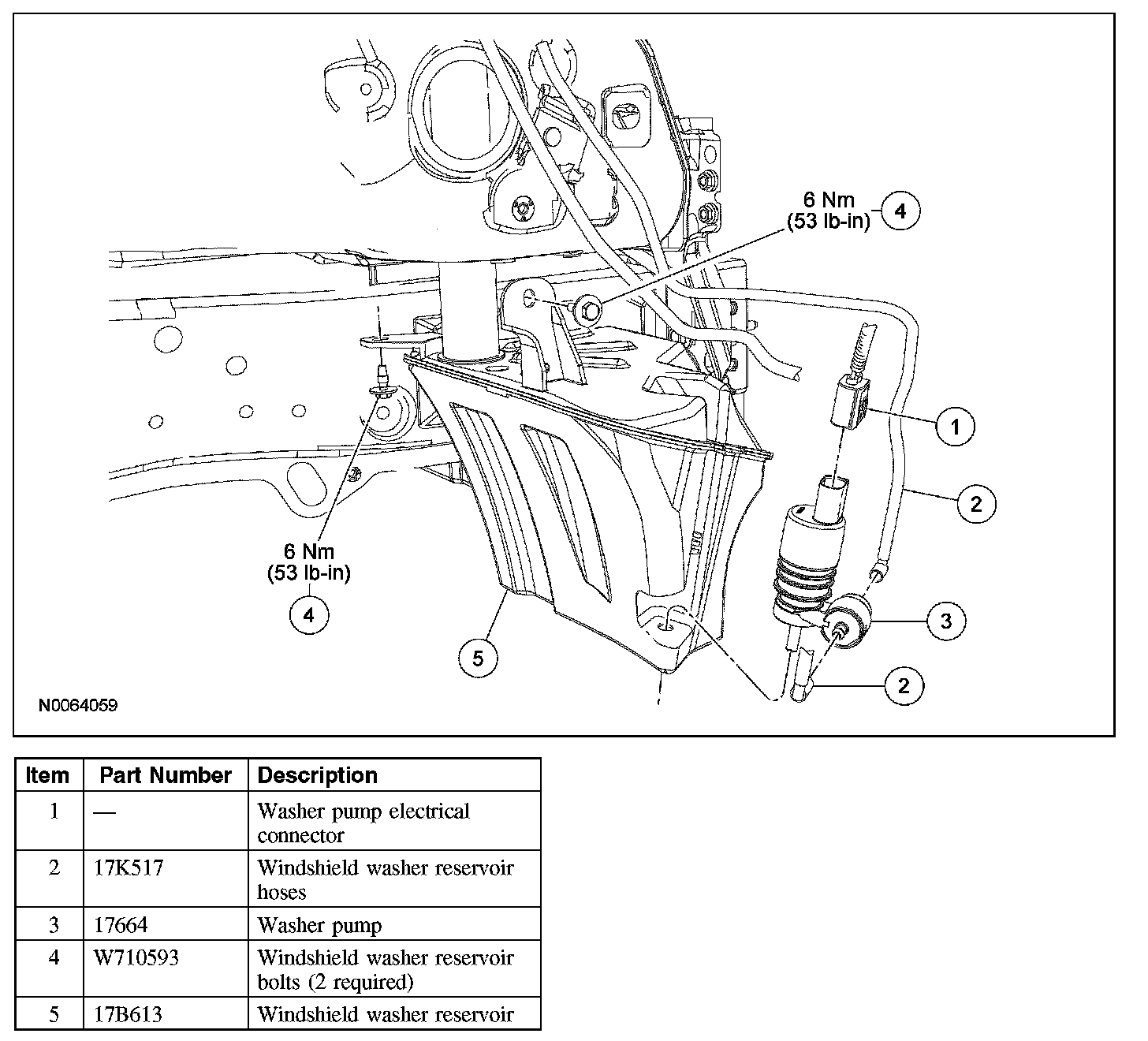 7. CAUTION: Do not operate the washer pump prior to filling the windshield washer reservoir. Failure to follow these instructions may result in premature pump failure.