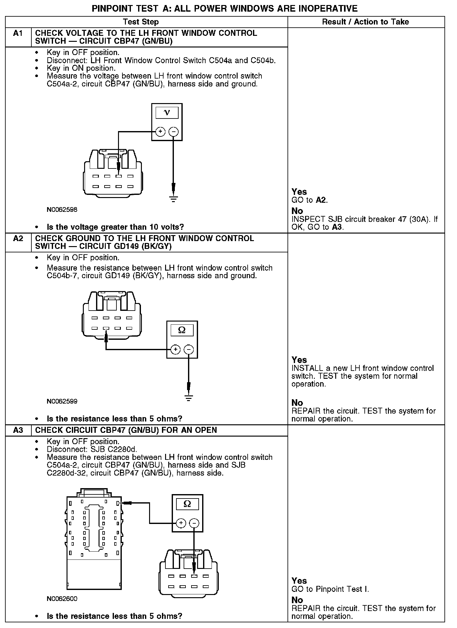 PINPOINT TEST A: ALL POWER WINDOWS ARE INOPERATIVE