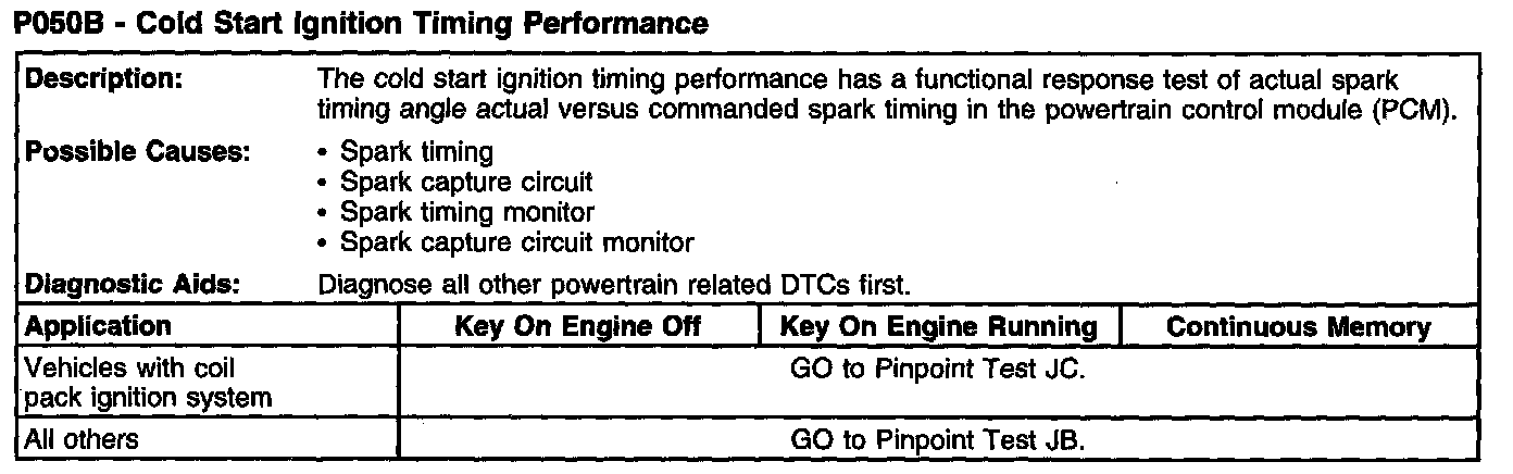 P050B - Cold Start Ignition Timing Performance: