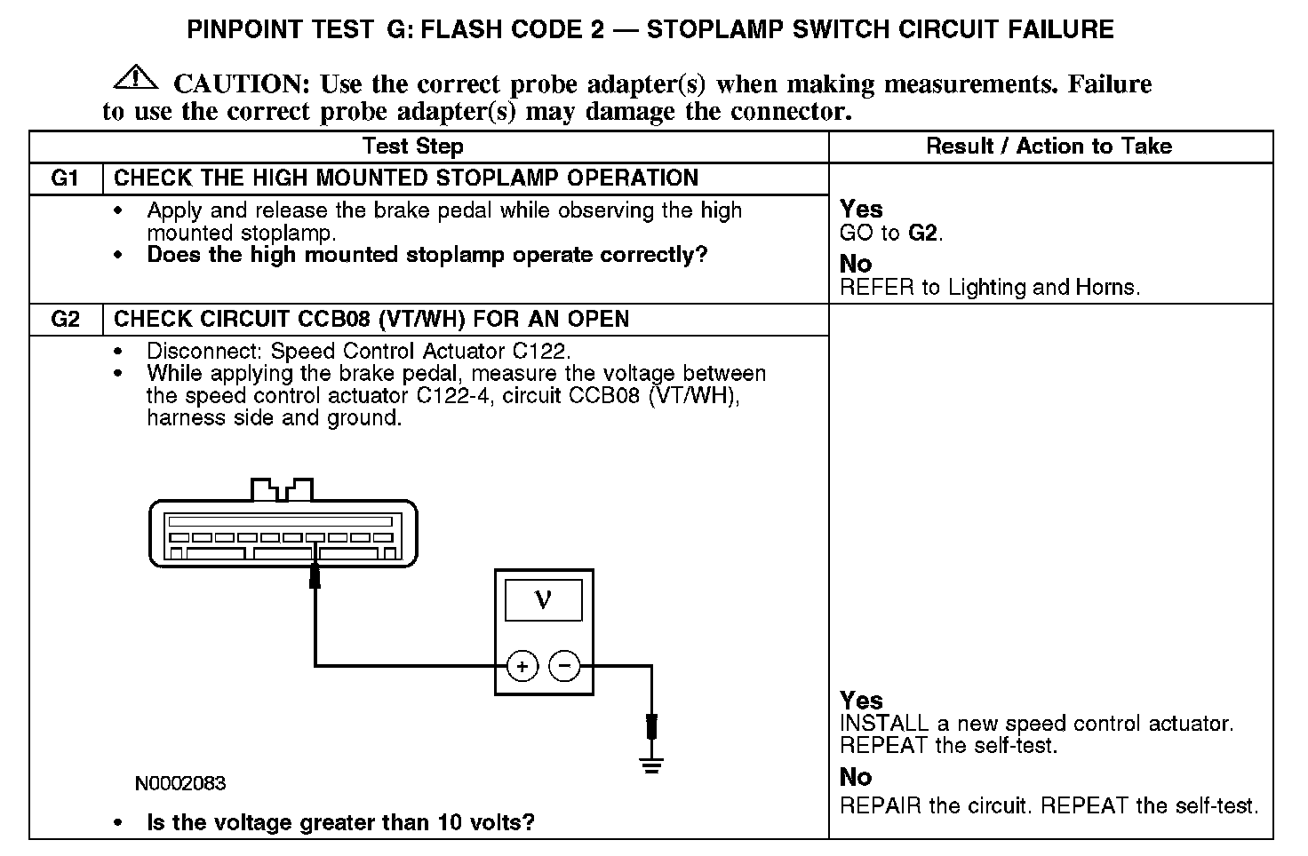 Test G: Flash Code 2 - Stoplamp Switch Circuit Failure