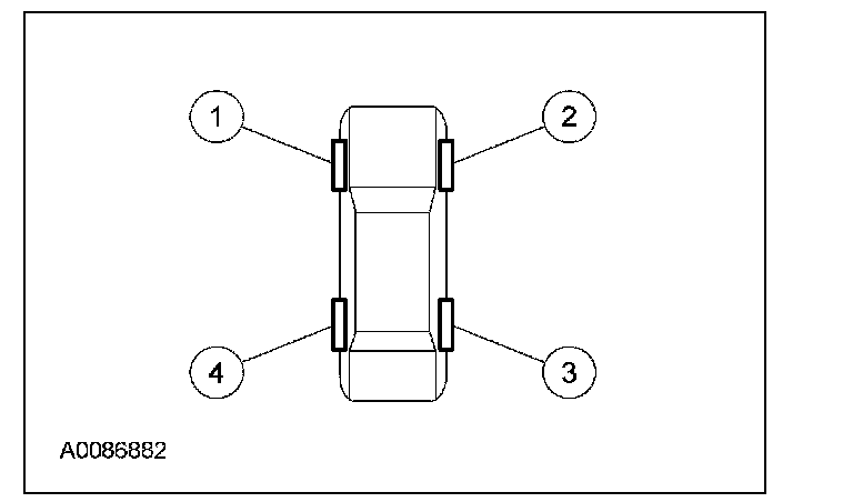 NOTE: If the vehicle has been stationary for more than 30 minutes, the sensors will go into a "sleep mode" to conserve battery power. It will be necessary to wake them up so they will transmit the latest tire pressure information to the smart junction box (SJB). For additional information, refer to Tire Pressure Monitoring System (TPMS) Sensor Activation.