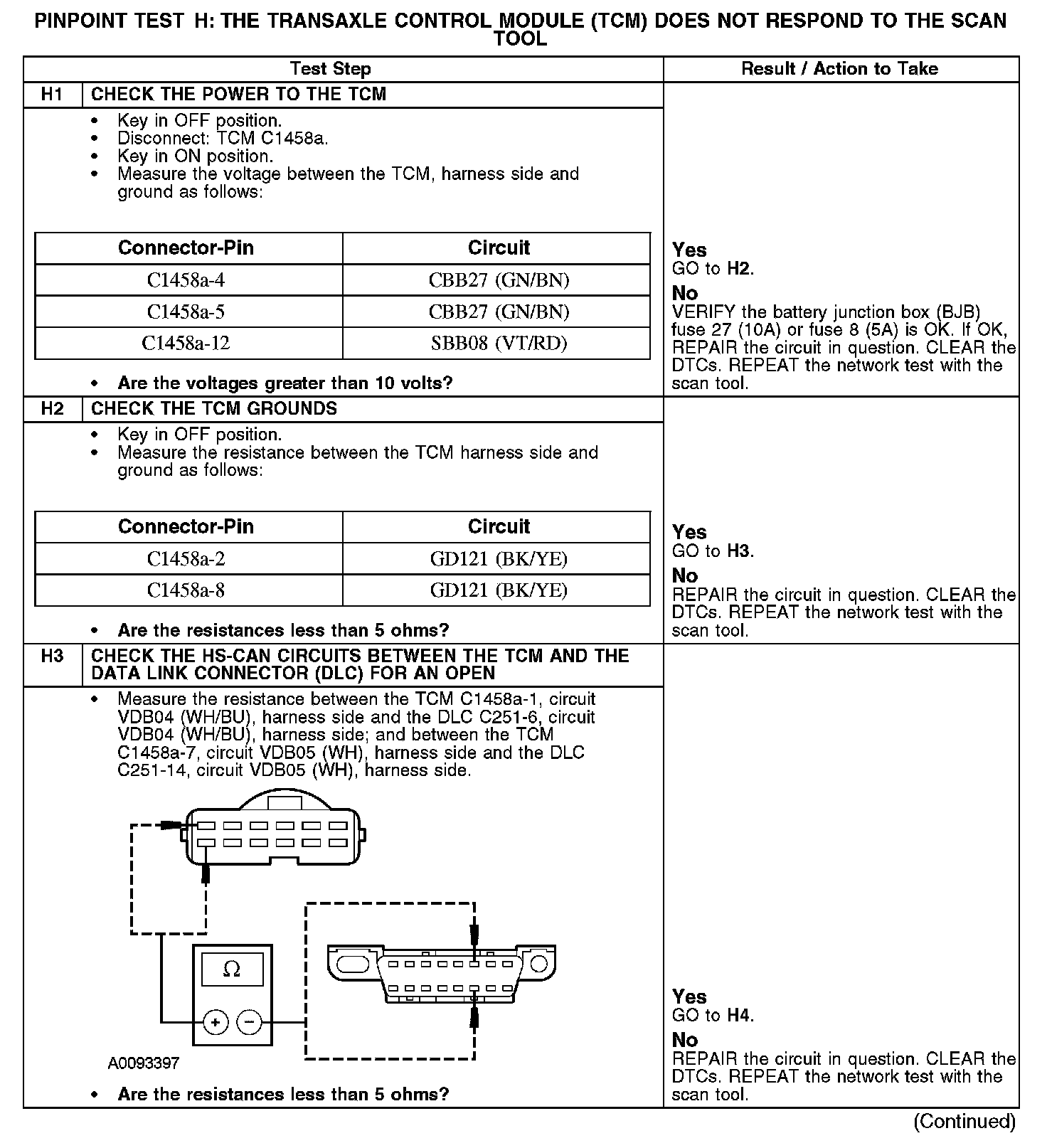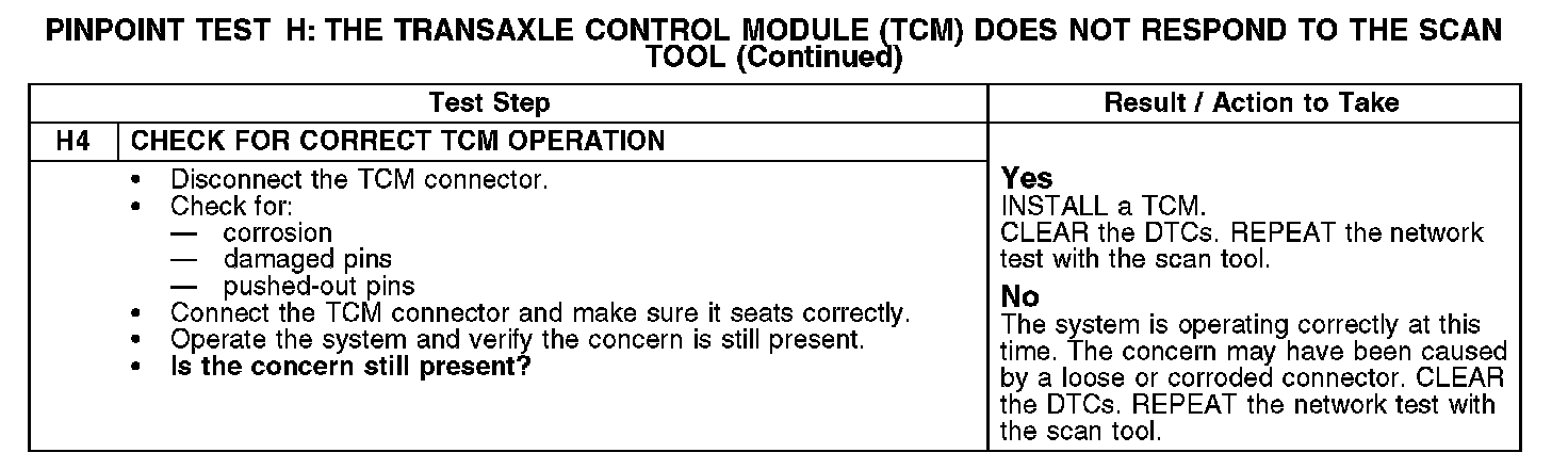 PINPOINT TEST H: THE TRANSMISSION CONTROL MODULE (TCM) DOES NOT RESPOND TO THE SCAN TOOLNormal Operation