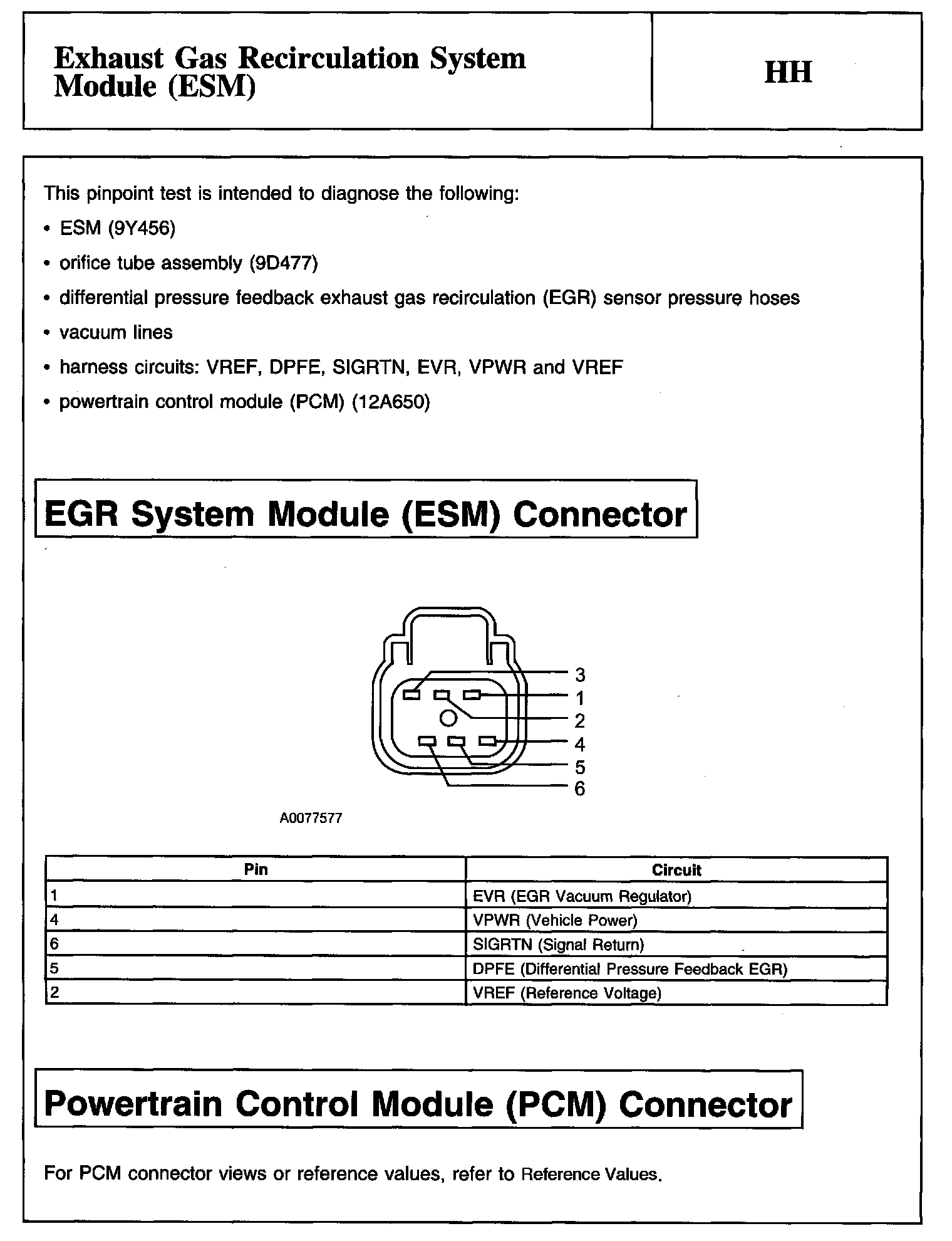 PINPOINT TEST HH: EXHAUST GAS RECIRCULATION SYSTEM MODULE (ESM)