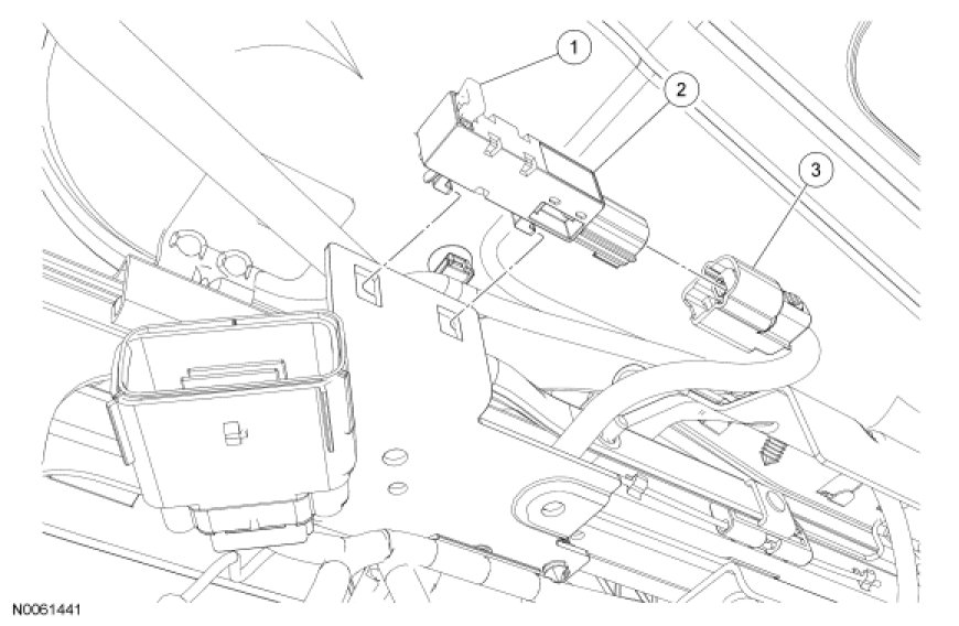 1. Remove the driver seat. For additional information, refer to Seats.