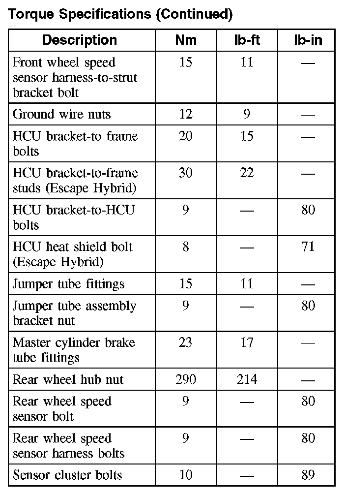 Torque Specifications (Part 1):