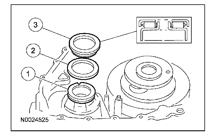 Install the mechanical diode one-way clutch with the rubber isolators in the positions indicated.