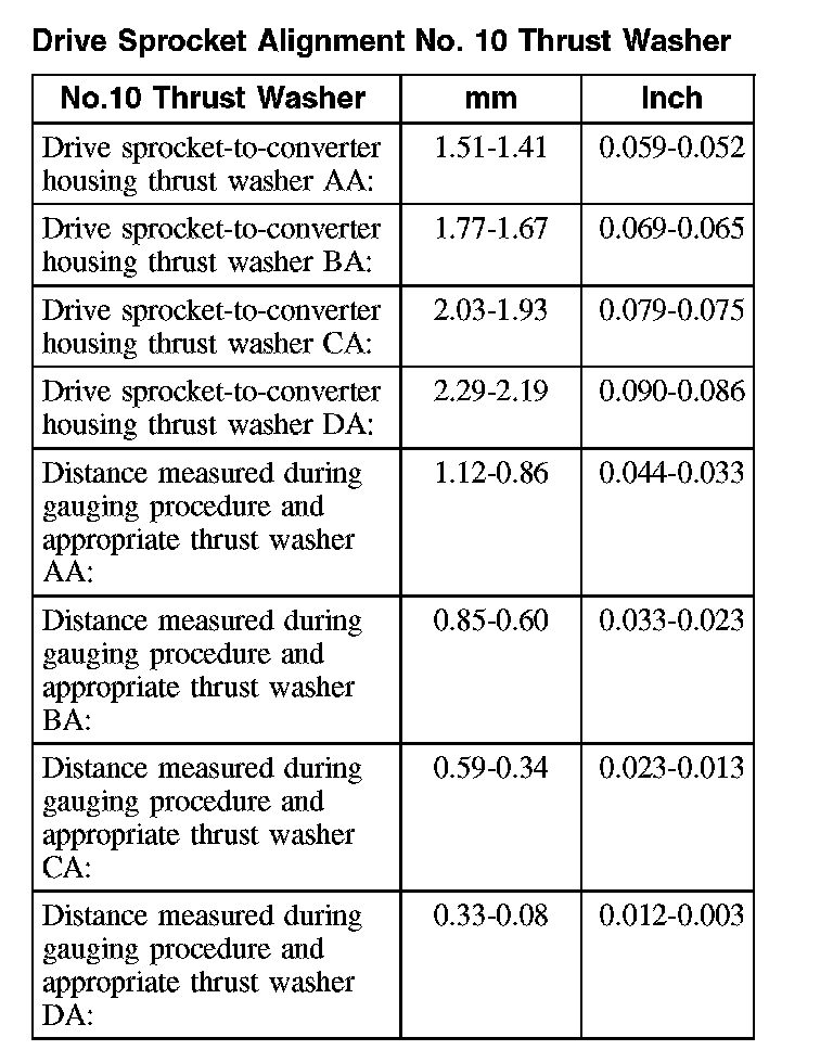 46. Select No. 10 thrust washer from the drive sprocket thrust washer chart.