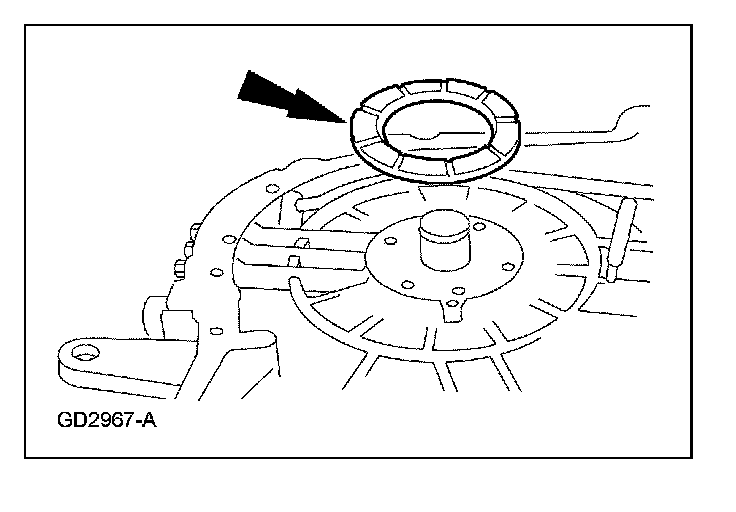29. NOTE: Make sure to position the low one-way clutch retaining ring as shown.