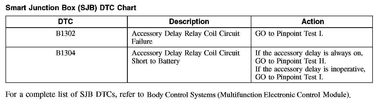 Smart Junction Box (SJB) DTC Chart