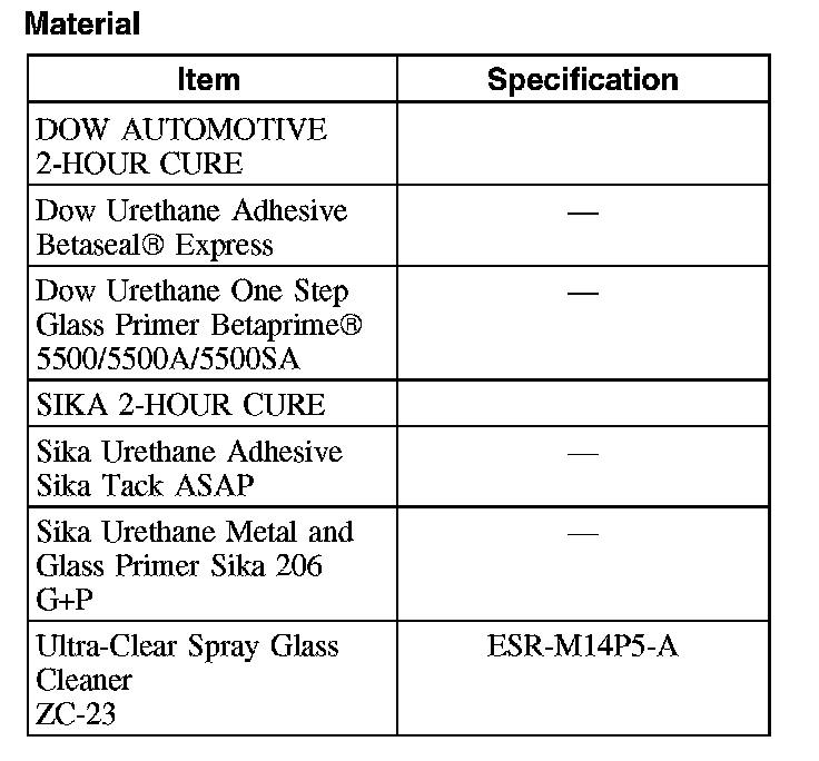 - Be sure to use the same brand and cure-rate products for the adhesive and primer. Do not mix different brands of urethane and primer. Refer to the Material Chart.