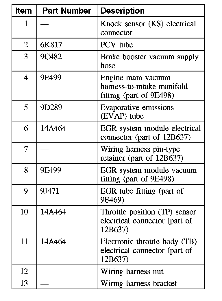 15. CAUTION: Do not use metal scrapers, wire brushes, power abrasive discs or other abrasive means to clean the sealing surfaces. These tools can cause scratches and gouges which can make leak paths. Use a plastic scraping tool to remove all traces of the old intake manifold gaskets