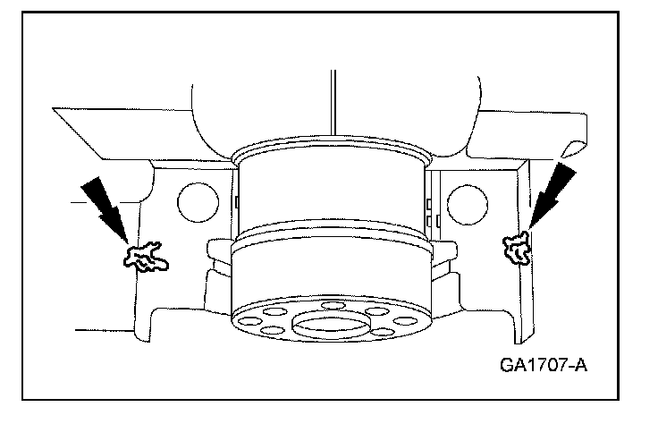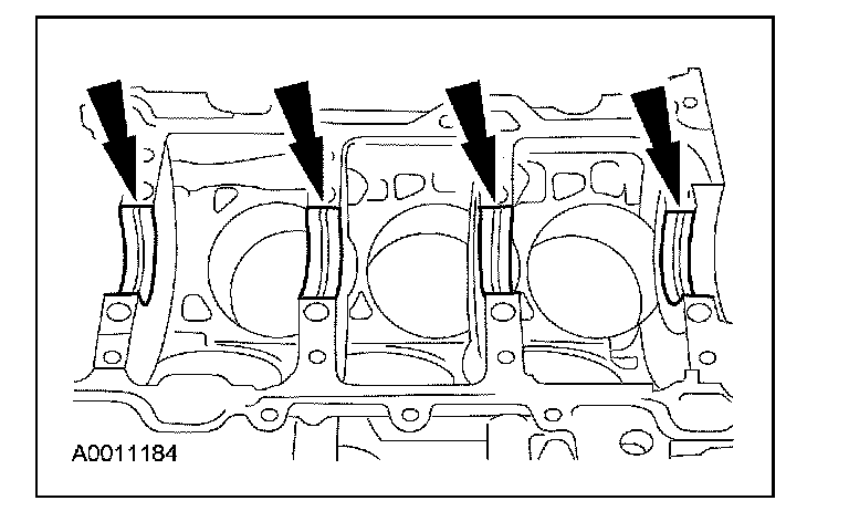 Apply silicone gasket and sealant to the rear main bearing cap to cylinder block parting line.