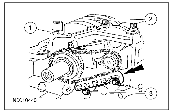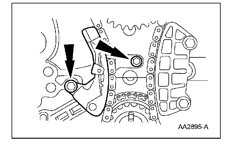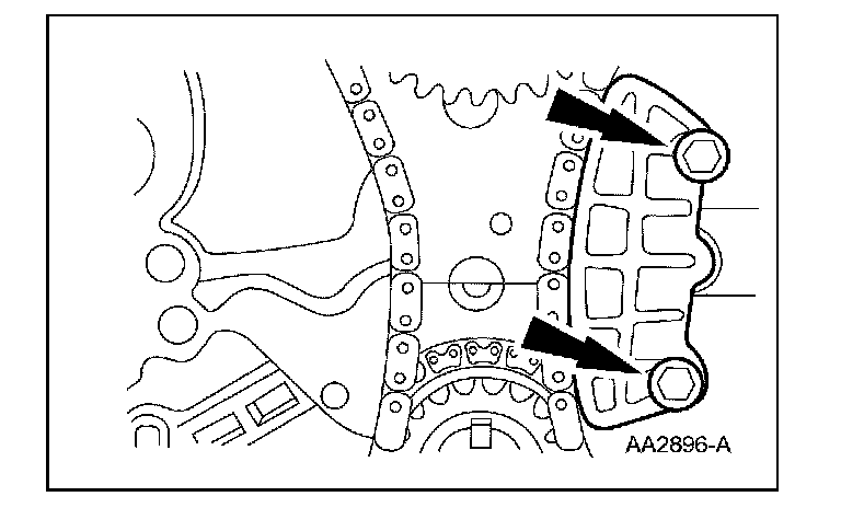 3 Position the balance shaft chain guide, install the 2 bolts and tighten to 10 Nm (89 lb-in).