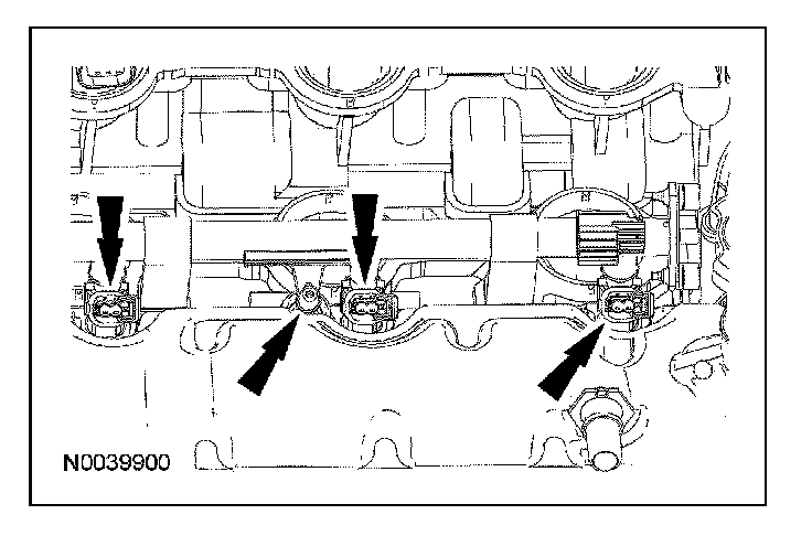 Connect the 6 fuel injector electrical connectors and attach the wiring harness retainers.