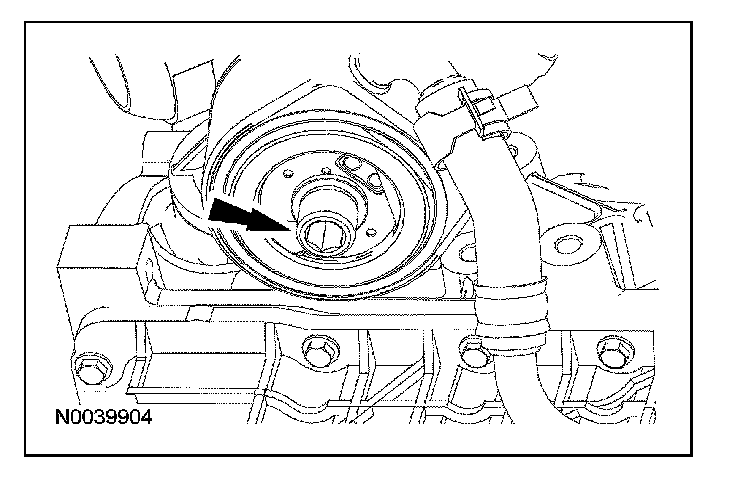 124. Connect the oil cooler hose. Position the oil cooler hose bracket and install the bolt.