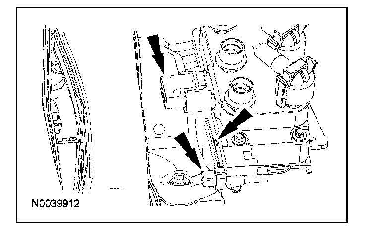 120. Connect the EGR system module vacuum hose and electrical connector. Attach the wiring harness pin-type retainer.