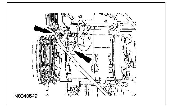 135. Connect the A/C compressor electrical connector and wire harness retainer.
