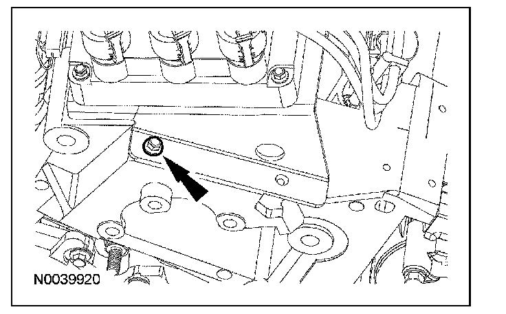 112. Position the engine wiring harness retainer and install the bolt.