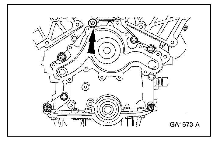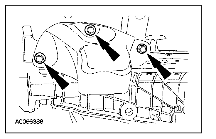 66. Remove the 5 cylinder block cradle-to-engine front cover bolts.