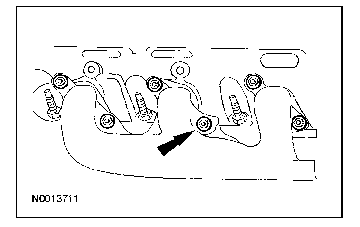 44. Remove and discard the 6 RH exhaust manifold studs.