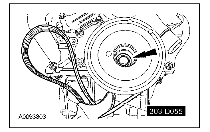 47. Using the special tool to hold the crankshaft pulley, remove the bolt.