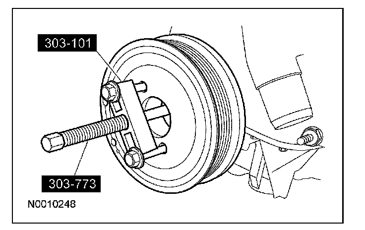 48. NOTE: If the pulley bolt is not installed, the tool will bottom out before the pulley is off.