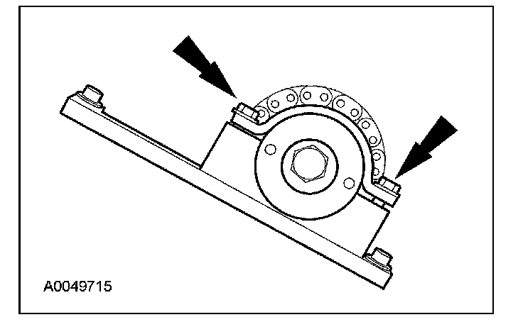 Position the camshaft timing slots below the centerline of the camshaft to correctly fit the special tools, and install the special tools on the rear of the LH cylinder head.