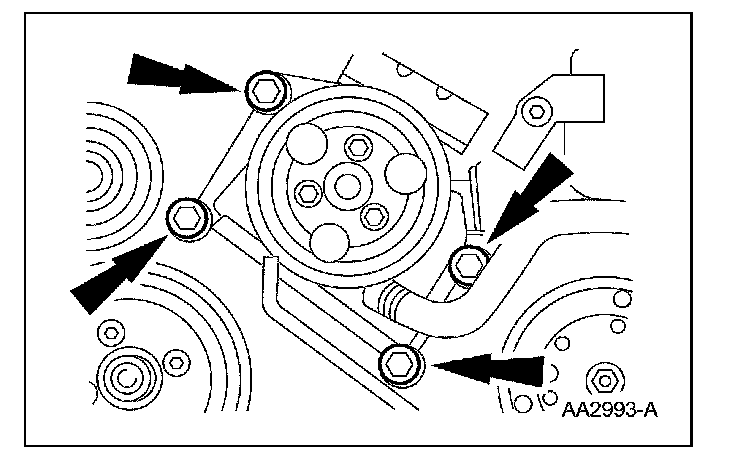 4. If necessary, remove the bolts and position the A/C compressor and power steering pump bracket aside.