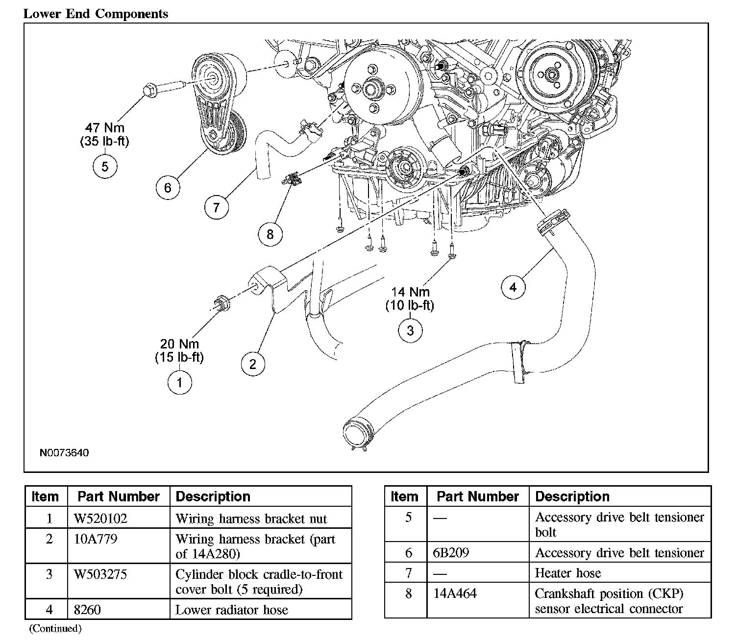 20. Install the 5 cylinder block cradle-to-front cover bolts.