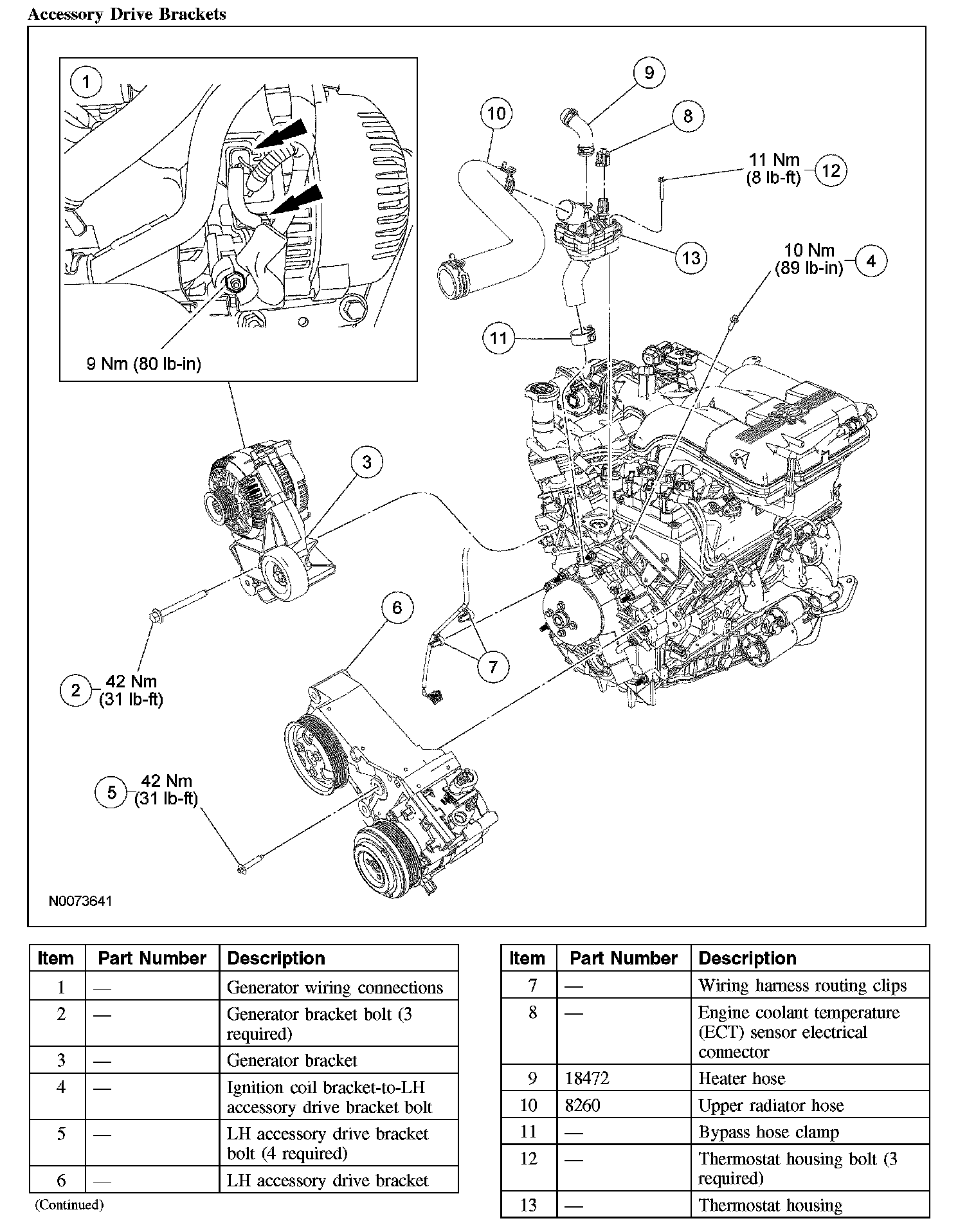 13. Position the LH accessory drive bracket and install the 4 bolts.