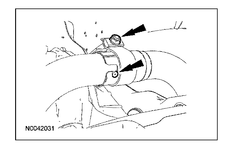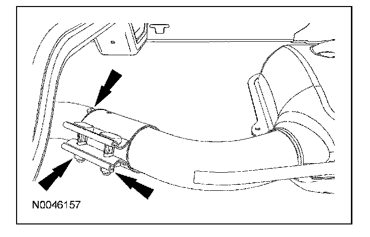 CAUTION: Do not use oil or grease-based lubricants on the isolators. These lubricants may cause deterioration of the rubber. This can lead to separation of the isolator from the exhaust hanger bracket during vehicle operation. Use only water-based lubricants on the isolators.
