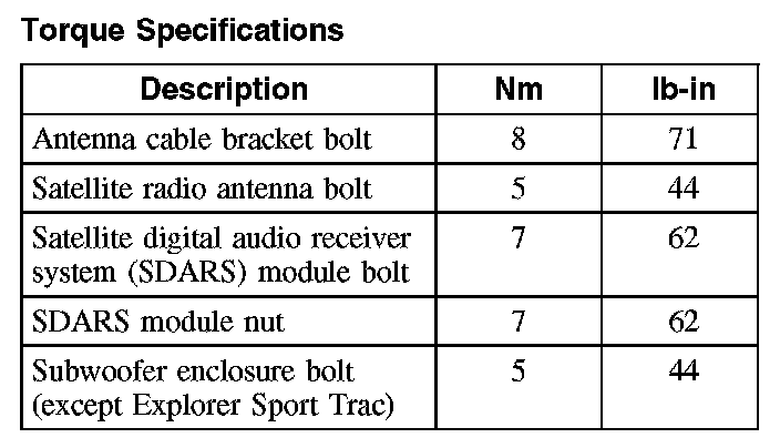 Torque Specifications: