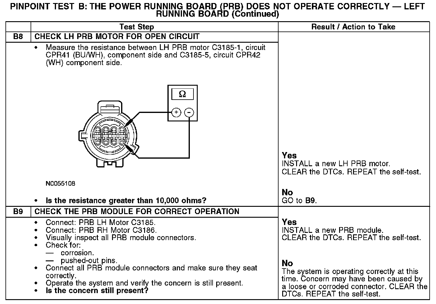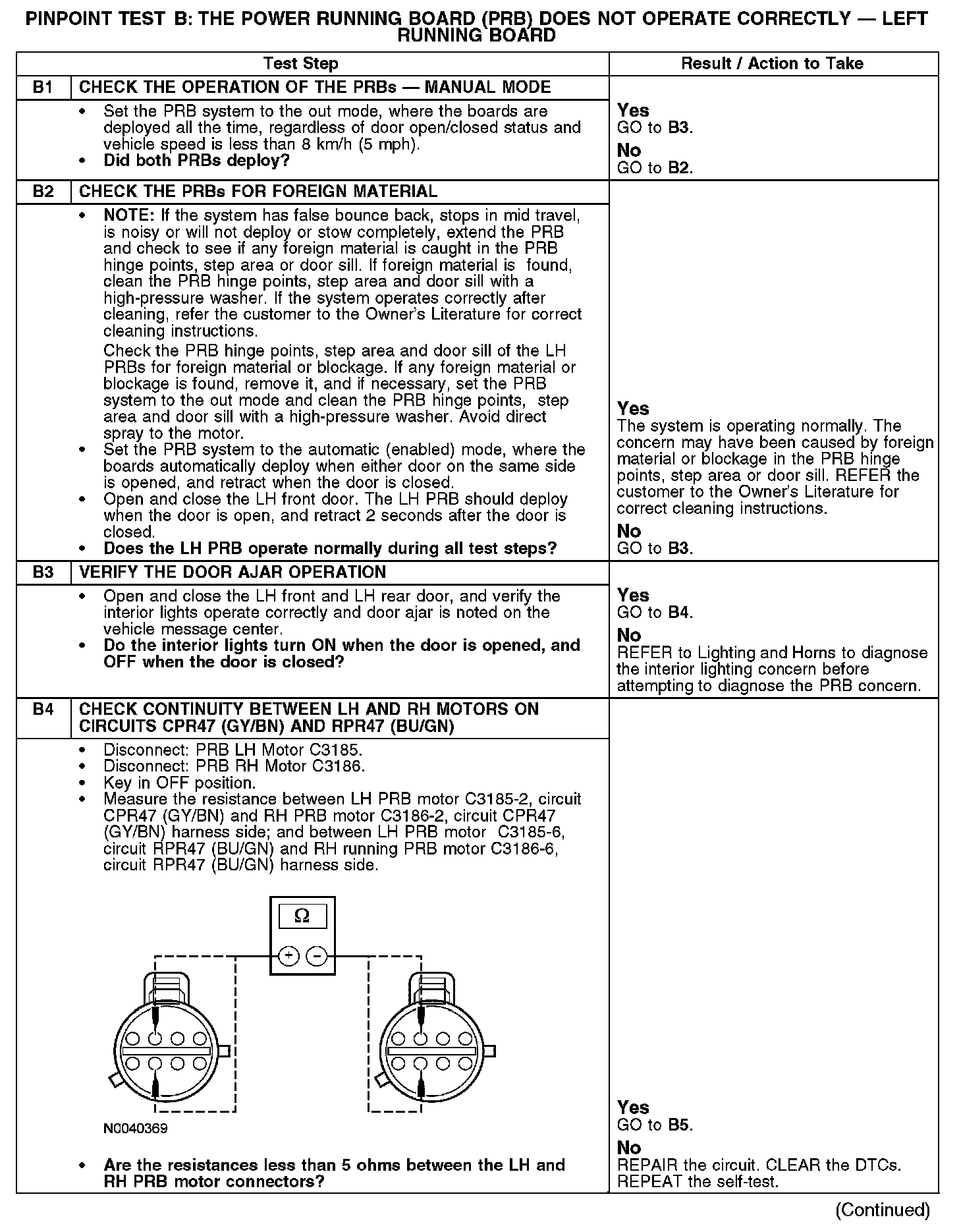 Test B: The Power Running Board (PRB) Does Not Operate Correctly - Left Running Board