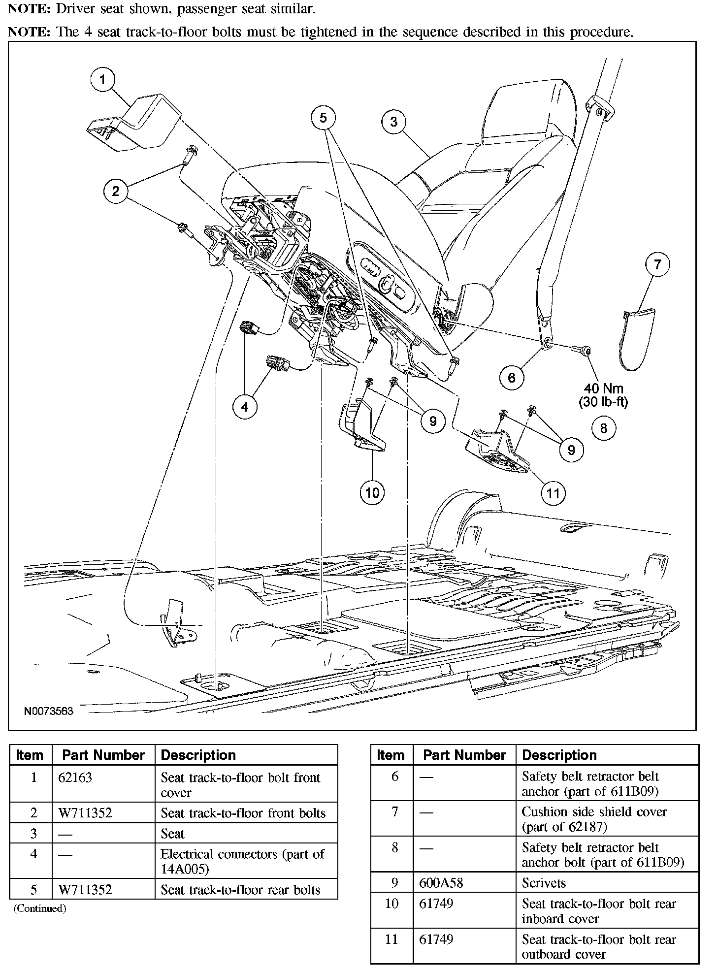 4. NOTE: Driver seat track inboard rear mounting ear shown, passenger seat similar.