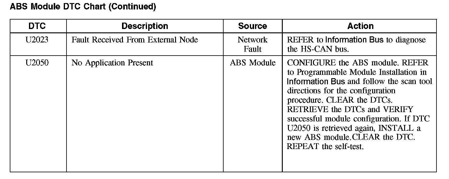 ABS Module DTC Chart